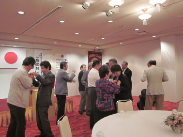 | 田野会長懇親会の開会挨拶 | 渡部副地区ガバナー乾杯 | 楽しいサヨナラ懇親会 |