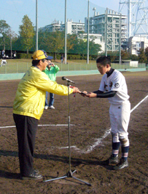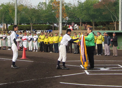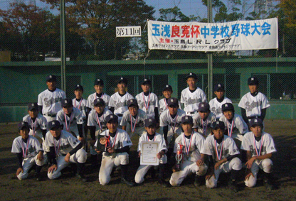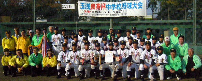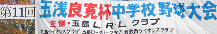 | 玉島LRLクラブ(玉島ライオンズクラブ・玉島ロータリークラブ・倉敷西ライオンズクラブ)の主催で、 第11回玉浅良寛杯中学校野球大会が、11月20日(土)と21日(日)、玉島の森野球場を主会場に開催され優勝旗を先頭に入場行進、そして開会式がありました。 浅口市内より4校、里庄町より1校、玉島地区内より5校、計10校が優勝を目指して、熱戦をくりひろげました。2日とも好天に恵まれ接戦と・好プレーを見せ応援に来た父母達も必死で応援をしました。結果決勝戦は、金光学園中学と里庄中学が対戦し金光学園中学校が優勝しました。 協力してくださった関係各位に熱くお礼申し上げます。 |