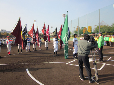| 整列しての第11回玉浅良寛杯中学校野球大会開会式 |