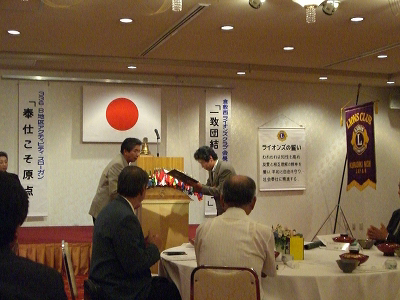 | 2010年9月9日セントイン倉敷に於いて田中ZCP(倉敷南LC)の公式訪問があり、今年度のガバナー方針、会員増強・青少年健全育成・ライオンズクエスト、等でありますが、貴クラブからは第二副地区ガバナーが出ておられるので詳しい情報はZCPより先に入っているので、あえて言いませんが、この2Z(水島・玉島地区)では会員の減少が激しく特に水島LCの減少を心配されていました。その後に武政前会長に2009〜2010下半期ガバナーズ大賞4R12クラブ合同「ライオンズクエスト公募型WSの開催」のガバナーズ大賞の伝達がありました。 |