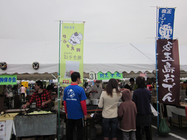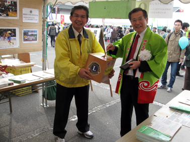 | 大勢のお客さんがブースに | 伊東市長もブースを回る | |