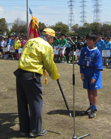 | クラブメンバーよりメタルを掛けてもらう選手 | 閉会挨拶をする山本第3副会長 |