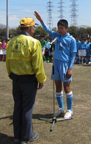 | 表彰式で整列した選手 | 挨拶する選手達 |