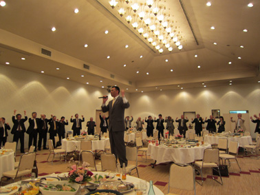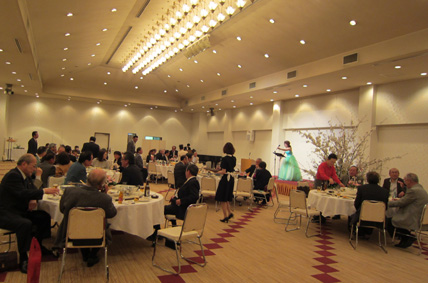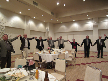 | 花見の前に通常例会があり、青少年育成支援フォーラム(JIYD)バナーバッジ、サポーターピンが畑野ゾーンチャーパーソンより手渡されました。 バナーバッジ(今年度特に活発なクエスト推進活動を行ったクラブ)代表して荻原会長が受領 サポーターズピン(クエストに顕著な活動をされた個人)伊沢新一さん、佐藤恵美子さんの2名 そして次期キャビネット準備会の地区大会委員長の滝沢さんより年次大会の案内の「DVDと横断幕」の紹介がありました。 場所を変え引き続いて計画委員会のすばらしい企画で、オペラ歌手を招き桜の花を飾り荻原会長の挨拶・ゾーンチャーパーソンの畑野さんの乾杯の音頭で楽しい一夜を過ごしました、より一層の親睦と和が広がったことと思います。 |