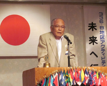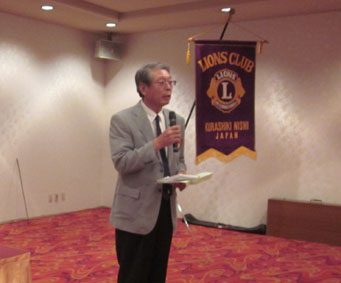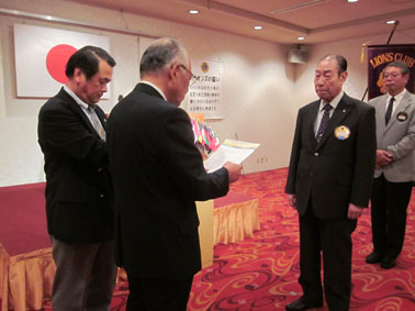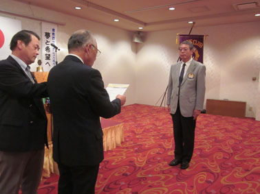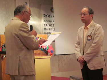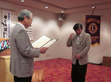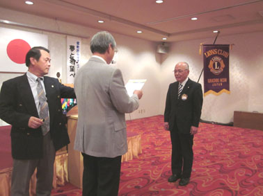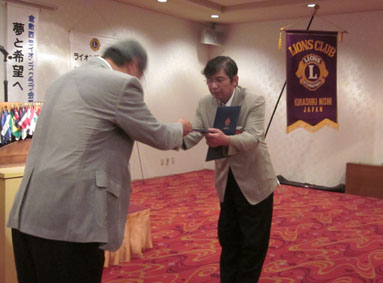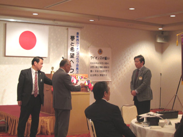 | 挨拶する荻原会長 | 西崎さん(LCIF17回)のMJF賞伝達式 |