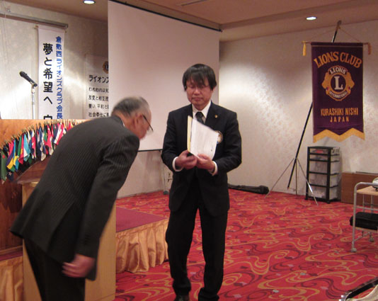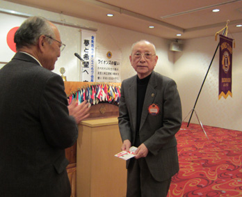 小野和夫さんクラブより卒寿(90才)のお祝いを頂く 775回例会(2012/3/8セントイン倉敷) |