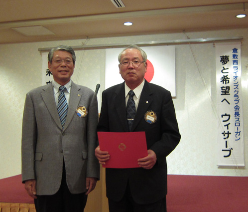 | 第778回例会(H24/4/26) 浅野博行さんが336-B地区第58回年次大会に於いて ガバナーより叙勲の表彰があり例会にて伝達されました。 |
