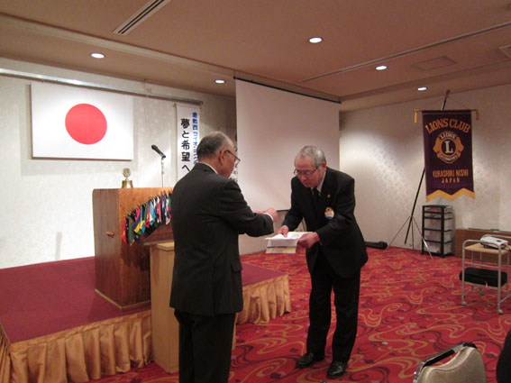 | 畑野さん(LCIF6回)のMJF賞伝達式 | 畑さん(LCIF2回)のMJF賞伝達式 | 佐藤さん(LCIF1回)のMJF賞伝達式 当日欠席のため2月23日 774回例会で表彰 |