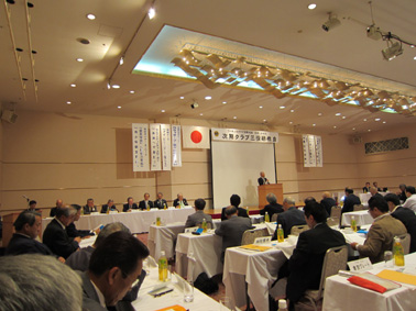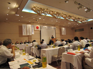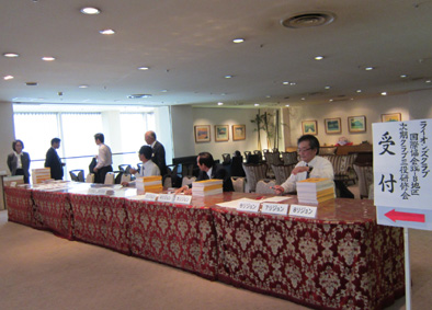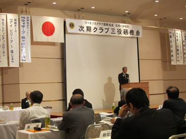 | 研修会受付をするキャビネット役員 | 渡部ガバナーエレクトより次期活動方針が発表 |