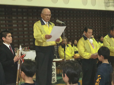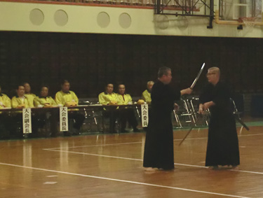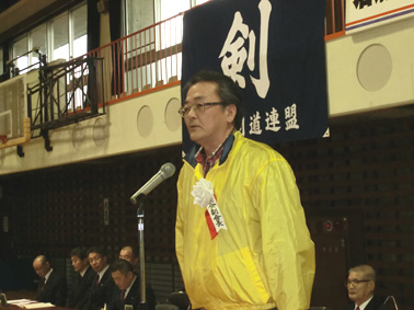 | 開会に先立ち模範演技をする剣道連盟の先生 | 模範演技 |