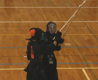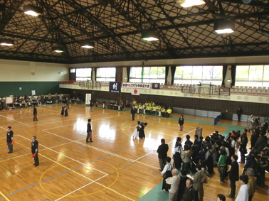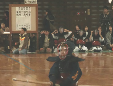 | 開会に整列した剣道連盟役員及び倉敷西クラブメンバー | 熱戦の様子 |