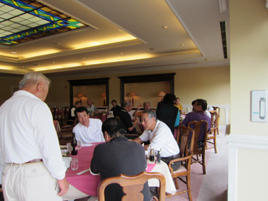 | 昼食での団欒 | ラウンド途中で記念写真 |
