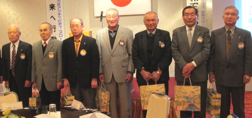 | 平成25年1月10日セントイン倉敷で第795回(チャーターメンバーを称える)例会が開かれました。チャーターメンバー玉島クラブより転籍2名(高田勲 ・田邉田市)・新クラブ結成時参加5名(西崎哲一・佐藤嘉宏・藤澤勝彦・滝沢昭彦・小林健二)計7名(34年前の発足時35名)になってしまいました、7名の中、終身会員1名で通常の例会には7名の出席となっています。本日はヤーターメンバー全員出席でした、何時までも元気で出席出来ますように、記念品を贈呈し懇親会で称える会が出来ました。 |