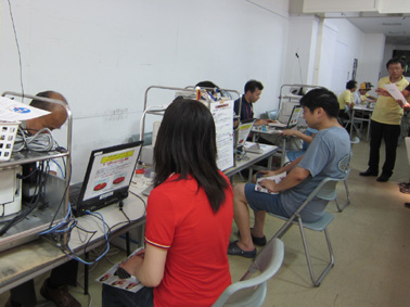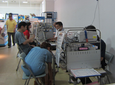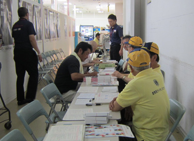 | 受付げ記入する一般の方 。 | 受付げで待つ一般の方 | 呼び込みをするメンバー |