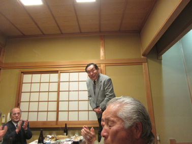 | 歴代会長会の懇親会で渡部ガバナーが次期336複合地区ガバナー協議会議長に推挙する事(理事会・例会に図り)で挨拶するL滝沢 | |