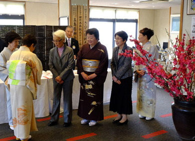 | 葛間会長挨拶 | 記念事業発表、田邉副実行委員長 | 目録贈呈倉敷市長へ |
