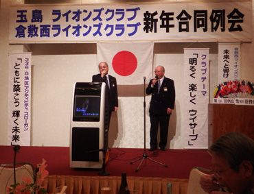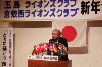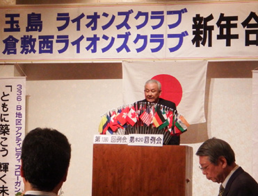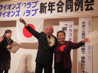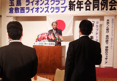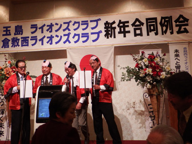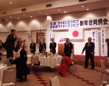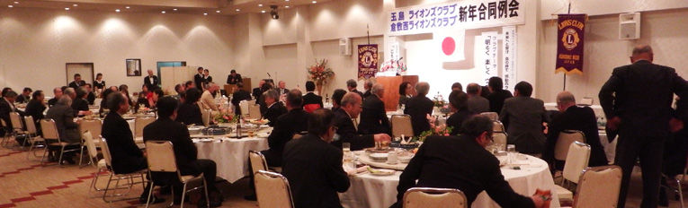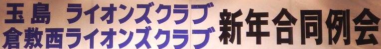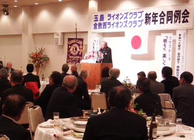 | 玉島LC・倉敷西LC・ 新年合同例会 (玉島LC第1390回・第810回) 平成26年1月23日:セントイン倉敷 3Fにおいて玉島ライオンズクラブのホストで玉島LC・倉敷西LC新年合同例会が開催されました。玉島LC葛間会長の開会のゴング、新年挨拶、倉敷西LCの国富会長挨拶、続いて各クラブ例会や幹事報告があり、倉敷西LCより輩出の渡部336複合ガバナー協議会議長の複合年次大会協力を宜しくとの挨拶、乾杯がありました。玉島LCの司会により懇親会が行われました。歓迎の音楽演奏そして飲むほどに調子も出て盛り上がり大変楽しい懇親会(両クラブの交流会)になり、2次会、3次会へと玉島の町が賑やかになりました。 幹事 赤野勝俊 |