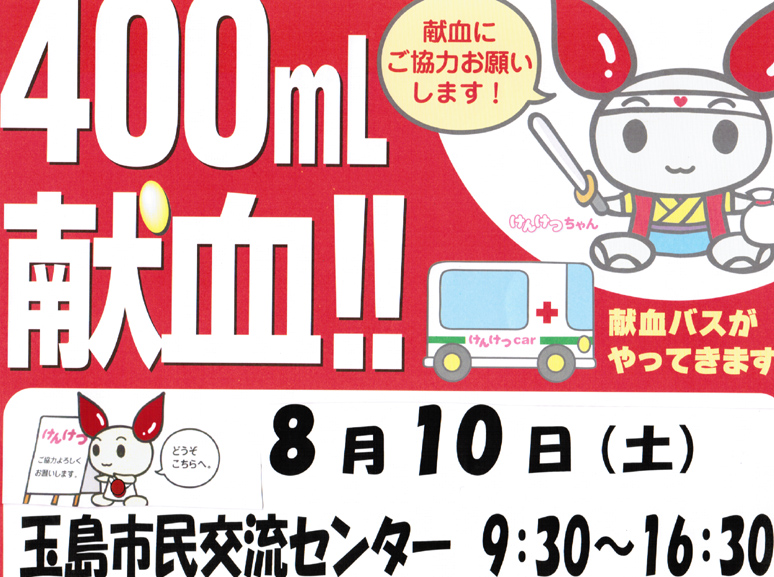 平素は、私達倉敷西ライオンズクラブが実施いたしております献血推進運動に、多大なるご理解ご支援いただきまして厚くお礼申し上げます。今年は例年比べ特に血液が不足しています。献血の少ない時期に愛の献血運動で下記の通り献血車がまいります。