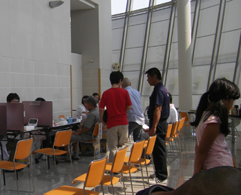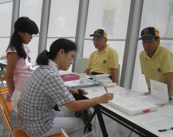 | 献血会場案内 | 受付げで待つ一般の方 | |