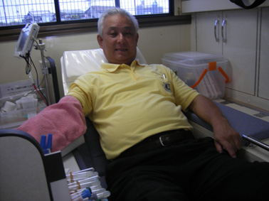 | 献血中(国富会長) | 献血中(赤野幹事) |