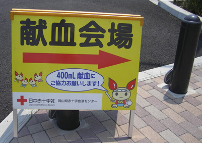 | 暑い中献血のご協力ありがとうございました、倉敷西ライオンズクラブ会長 国富憲一 |