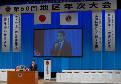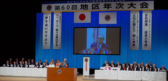 336B地区第60回地区年次大会が4月12日、4月13日「倉敷CC・倉敷国際ホテル・倉敷アイビースクエア・倉敷市民会館」で開かれました。 ●336-B地区 アクティビティースローガン『ともに築こう 輝く未来』 ●336-B地区 ガバナーローガン『新しい風 変化を求めて』 ●336-B地区 ガバナーキーワード『会員増強』『指導力育成』のもと1500名を越す岡山、鳥取両県のメンバー、来賓として伊原木岡山県知事、伊東倉敷市長、ライオンズ関係で名越元国際理事、をお迎えして開催されました。「5Rのクラブがホスト、前日の記念ゴルフ大会、前夜祭、代議員会、記念式典」等々 ご苦労さまでした。