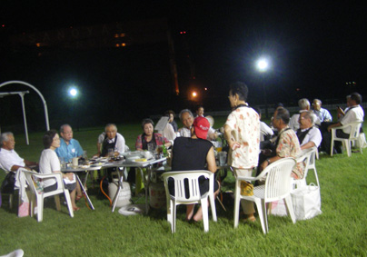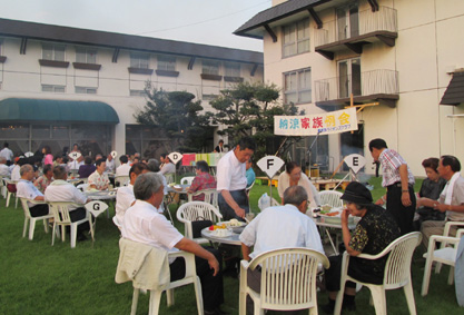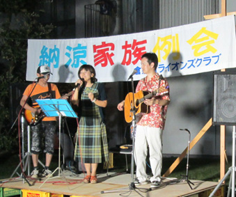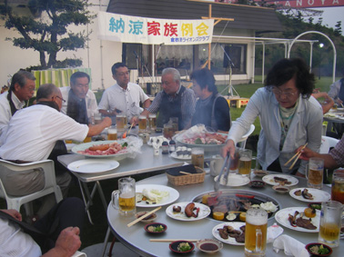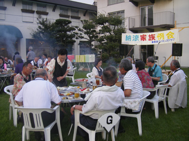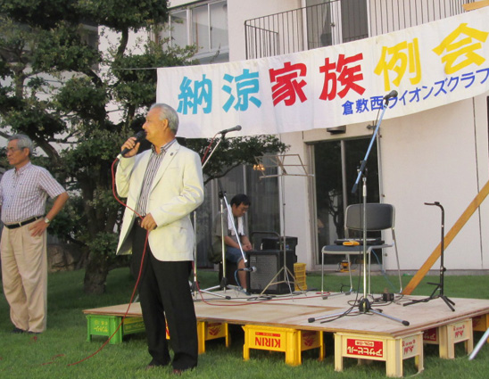 | 平成25年8月11日 倉敷西LC家族納涼例会を昨年同様「倉敷シーサイドホテル」で行いました。 国富会長の方針で今年度の納涼例会は「倉敷シーサイドホテル野外焼肉パーティー」パートナー同伴(子どもは今年度も中止)で開催しました。 第809回例会の後、パートナーと焼肉料理を囲み、イベントとして歌や楽団で納涼懇親会を行いました。パートナーの協力があってのライオンズだと言う事を強く参加者に呼びかけて楽しい懇親会になりました,。 (計画委員長 中桐宣悦) |