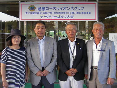 | 10月14日、ローズライオンズクラブのチャリティーゴルフコンペがありました。倉敷西LCから1組(猪木・難波・杭谷・藤澤)参加しました。参加総数180名の大コンペでした。西クラブ参加者の成績はみなさんまずまずでした。ハーフの成績で順位を決めて午後には商品を頂いての流解散でした。長年行っている国際平和ポスター展も合せて展示していました。 ゴルフ部会長 猪木愼一 |