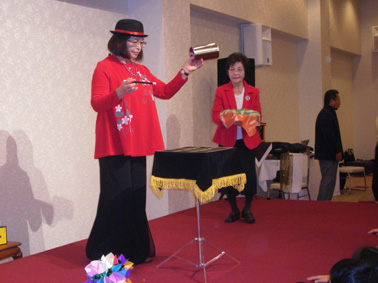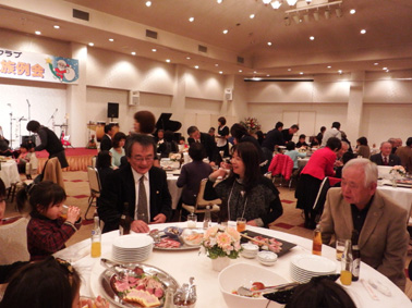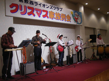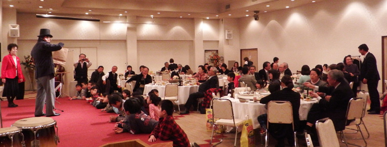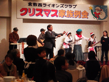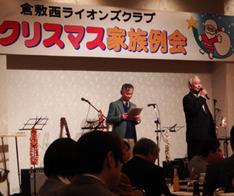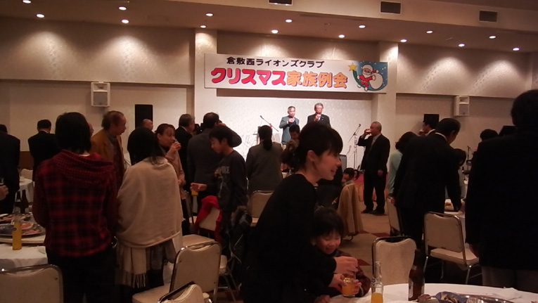 | 12月23日セントイン倉敷において、クリスマス家族例会が開かれました。中桐宣悦計画委員長のもと光岡迷?司会さんで始まり、国富会長挨拶、渡部336複合地区ガバナー協議会議長の乾杯で始まりました。ハワイアンの迷バンド、迷手品と続き、子ども、孫達、メンバー、パートナー合わせて110人余が参加して大変賑やかなクリスマス会となりました。子ども達はクリスマスプレゼント、パートナーには花束が送られて、ロアは当日誕生日の白谷さん、池田第一副会長の閉会挨拶があり閉会しました。そして二次会三次会と玉島の町が賑わったのでは?。下記写真で楽しんだ様子をご覧下さい。 |