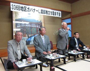 | 発起人代表の高田勲さんの挨拶 | 張り切っている渡部ガバナーエレクト |