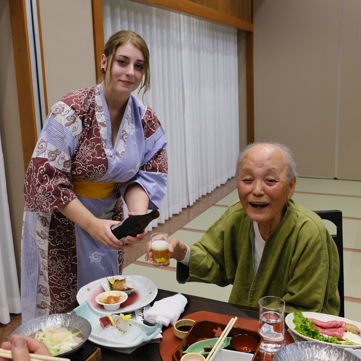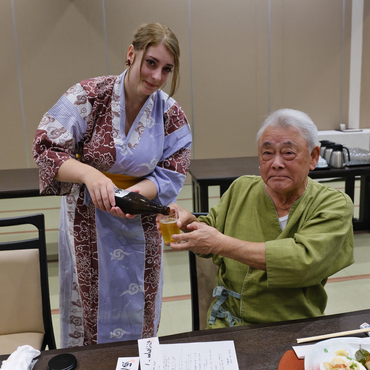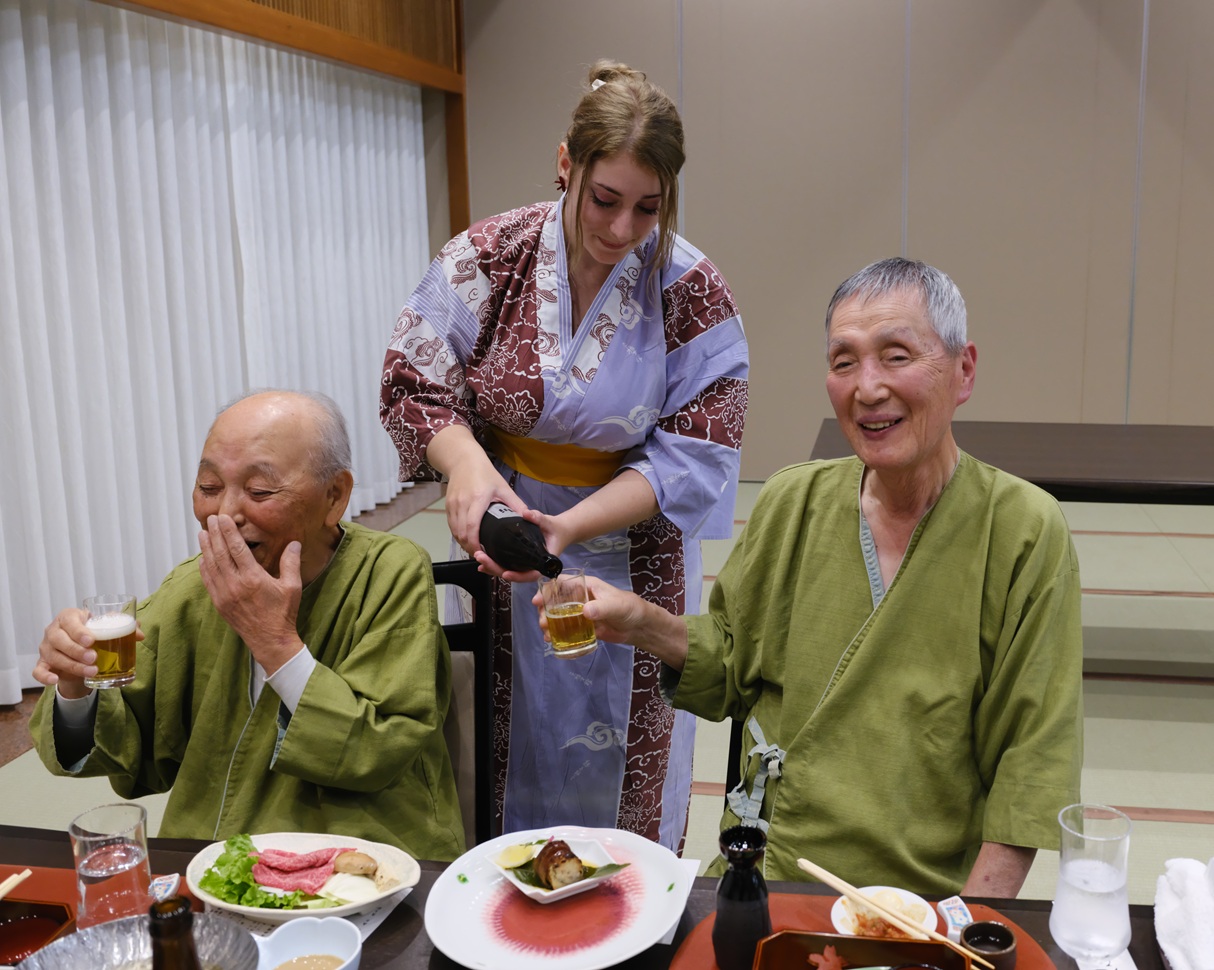 お宿の「楊貴館」で温泉につかって夜の宴会に突入!