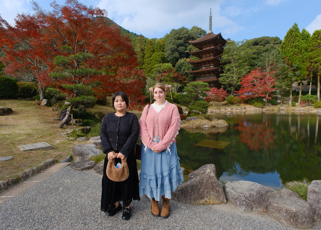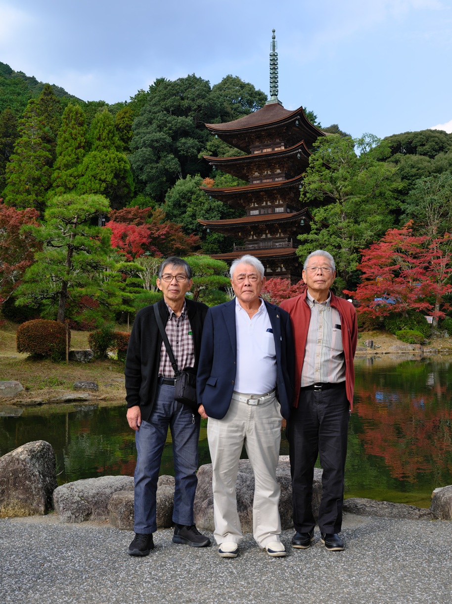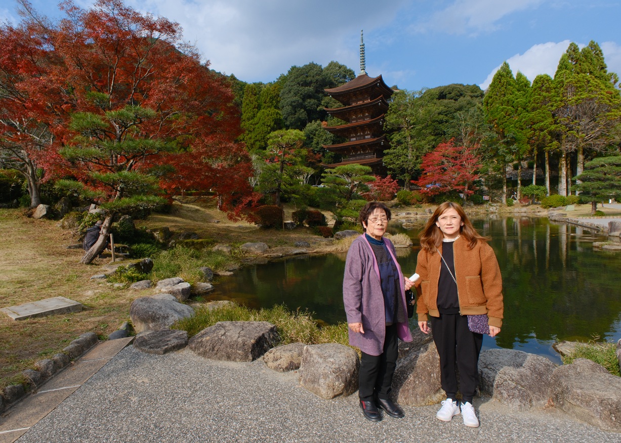 そして、この旅行の最後見学地である山口瑠璃光寺に迎いました。瑠璃光寺は、五重塔とお庭が有名で五重塔は修繕中ですが外観は覆いも取れてきれいな姿がみられました。