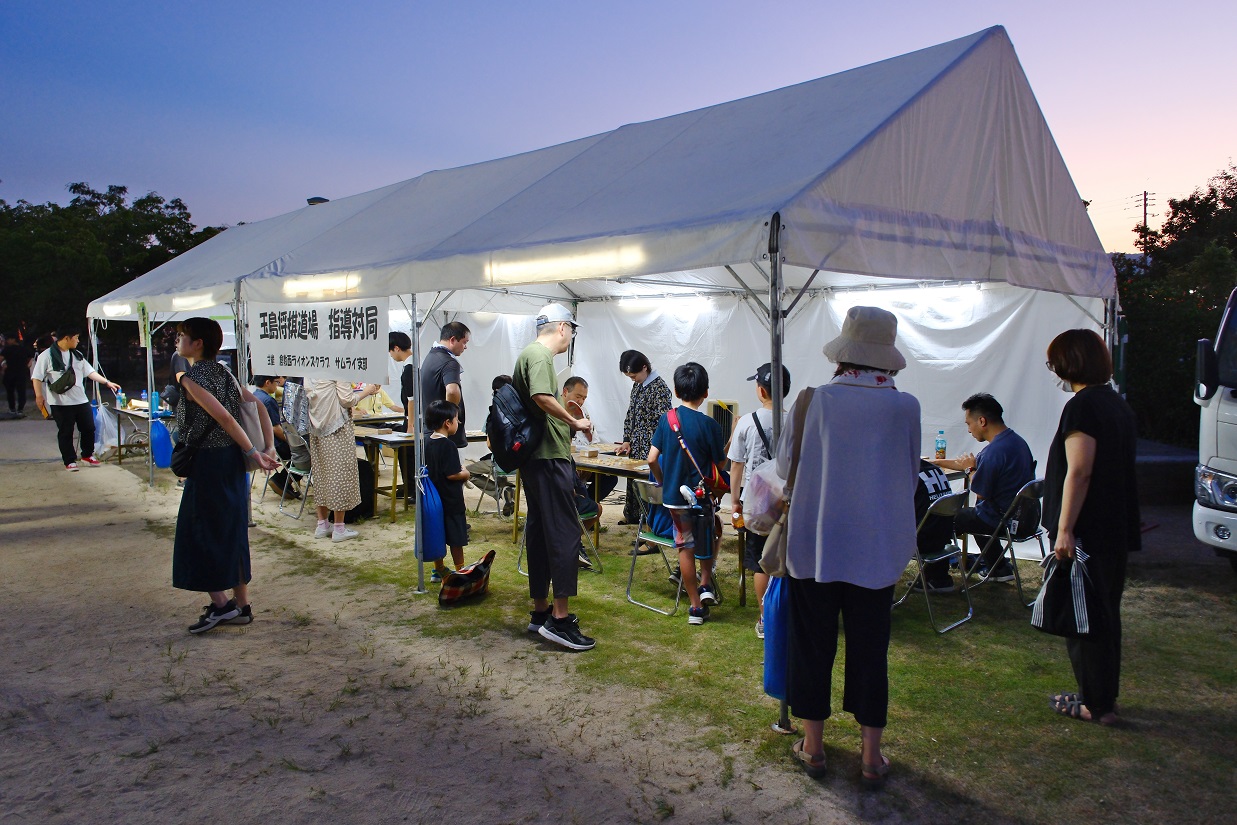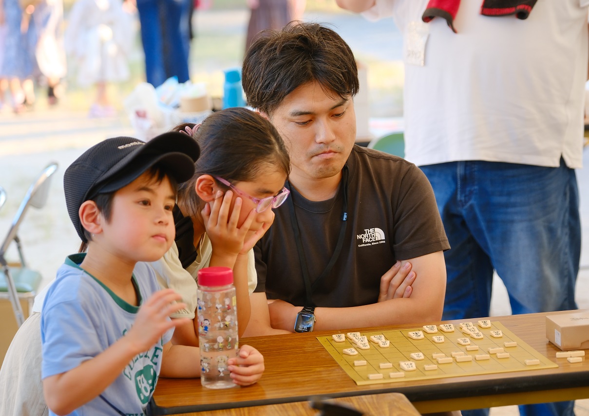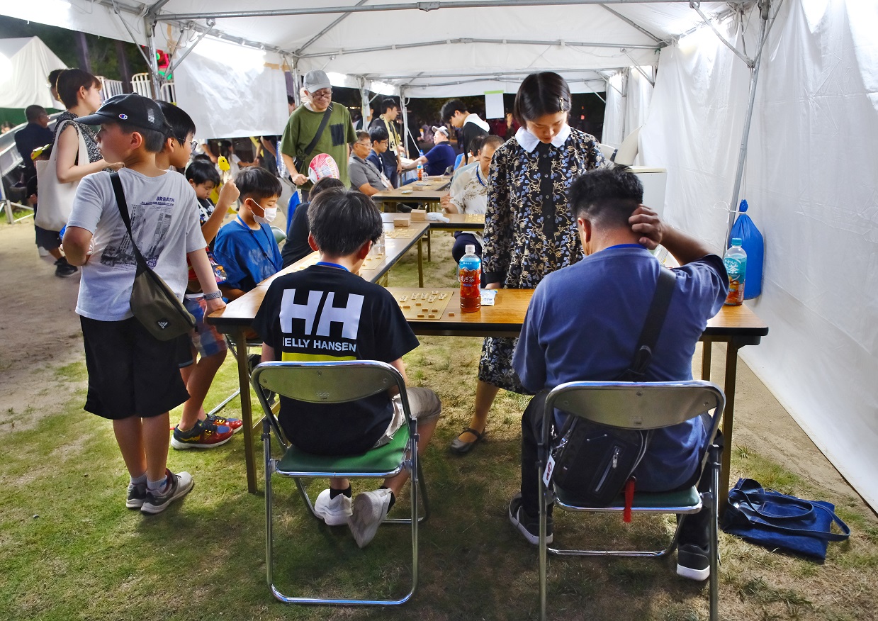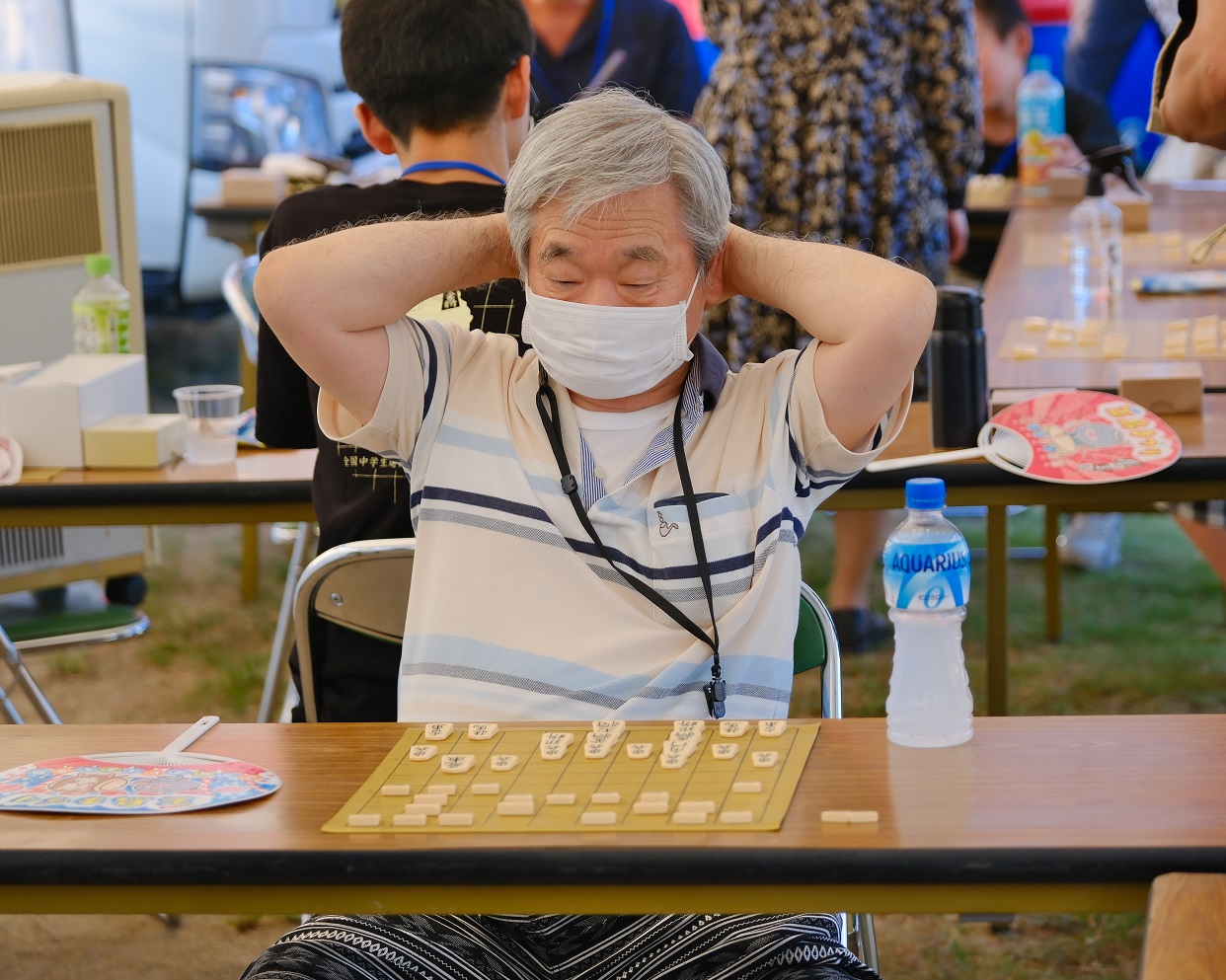 倉敷西ライオンズクラブでは、まつり内のイベントとして、サムライ支部主催で新倉敷駅南公園に「玉島将棋道場 指導対局」ブースを構えました。