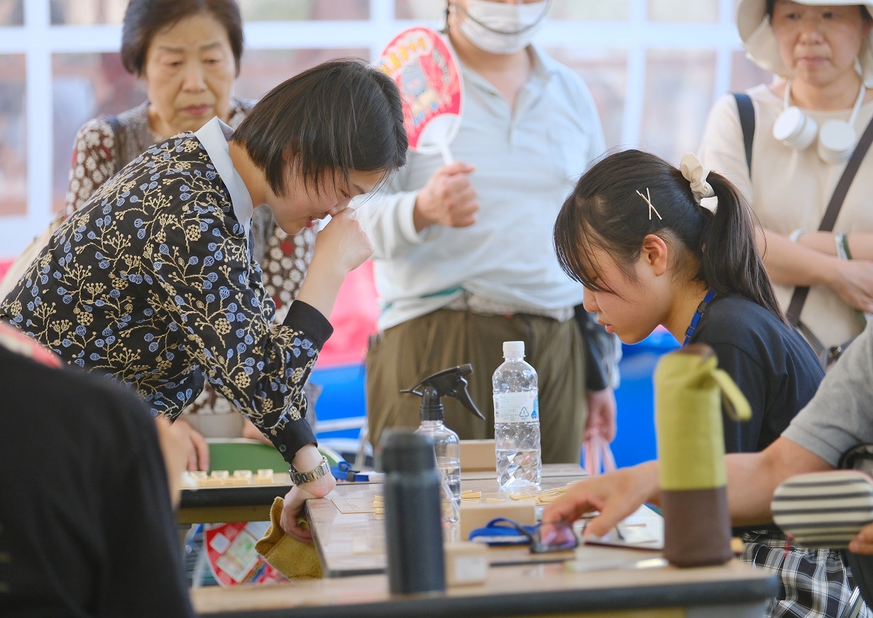 また、以前開催した竜王戦誘致記念「中高生将棋大会」で活躍した地元玉島の福島くんも参加し、藤井女流初段に平手での対局で勝利するなど、参加した方全員に楽しんでいただけたのではないかと感じました。